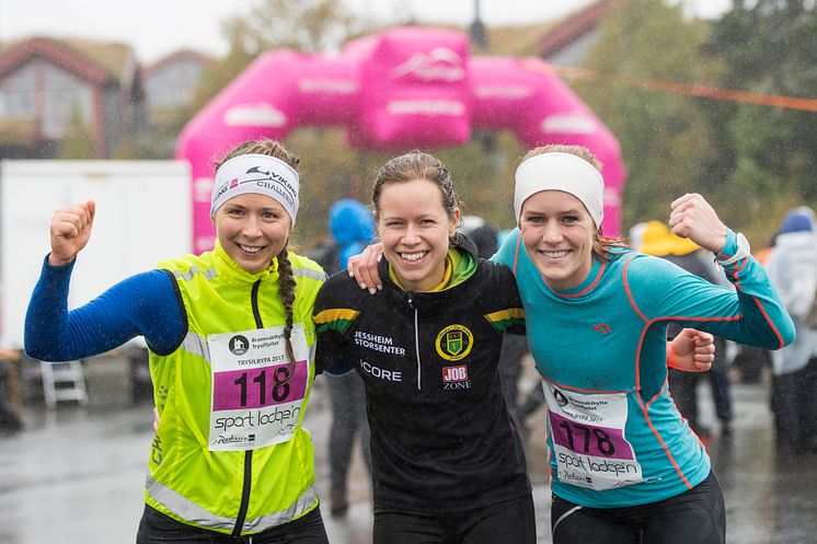 De tre raskeste på 13 km var strålende fornøyde, her fra venstre: Eline Andersen, Silje Fjørtoft og Maja Solbakken.