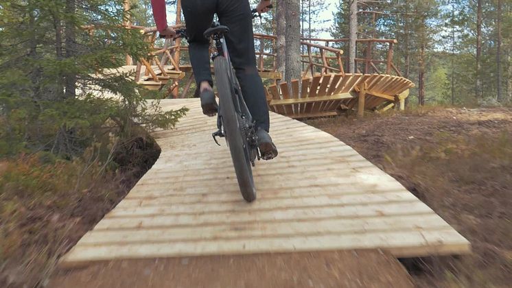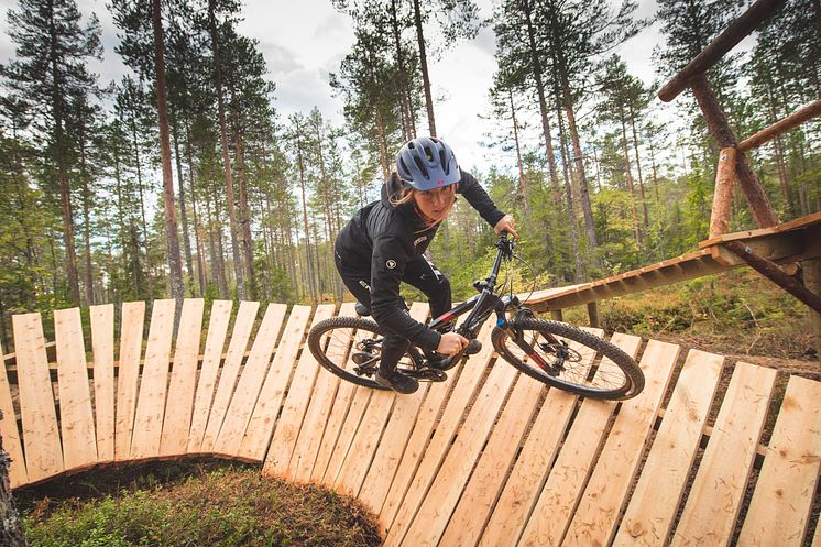 - Miss Piggy har fått sitt navn fra en stor, bygget trekonstruksjon som ser ut som en grisehale, der du først sykler over stien og så under den igjen, sier Olve Norderhaug, prosjektleder for byggingen i Trysil Bike Arena. Det er foreløpig ingen i Skandinavia som har bygget noe lignende sykkelelement.