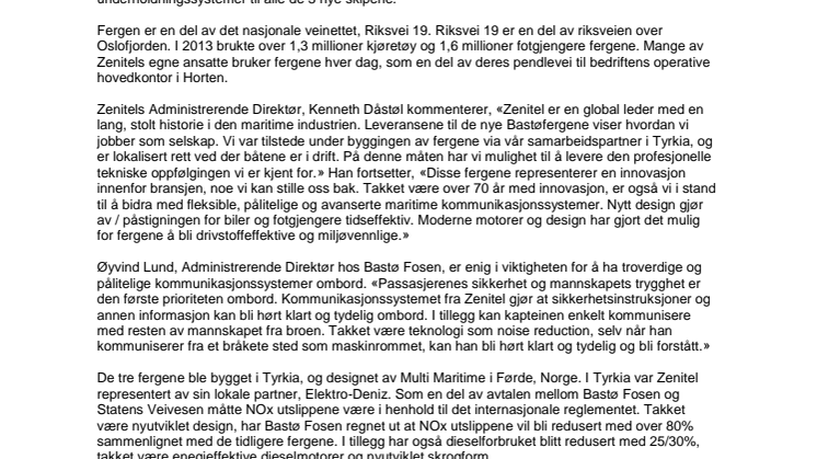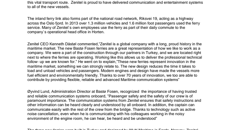 Zenitel ensures safety onboard Norway`s busiest ferries (norsk versjon vedlagt)