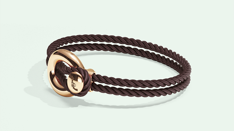 This exceptional bracelet gently encircles the wrist, designed in 925 sterling silver with a choice of responsibly sourced recycled nylon rope or supple leather. The soft, floating ring at its center represents freedom, dignity, and unity, echoing the Knotted Gun sculpture by Carl Fredrik Reuterswärd—a global symbol of peace and the inspiration behind this meaningful design.