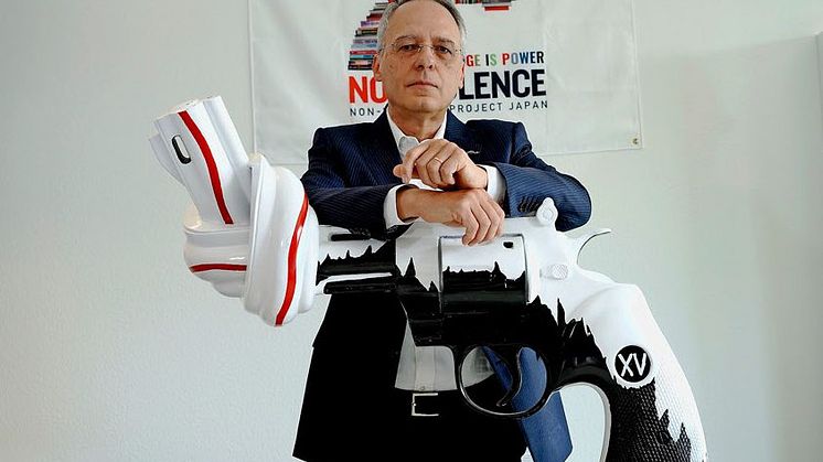 ROME- Patrizia Gucci has crafted her own version of the internationally renowned symbol for the Non-Violence project foundation. As the only Gucci family member currently working in design today, she has redesigned the knotted gun created by artist Carl Fredrik Reutersward in 1980 which is on display outside the headquarters if the United Nations in New York City.