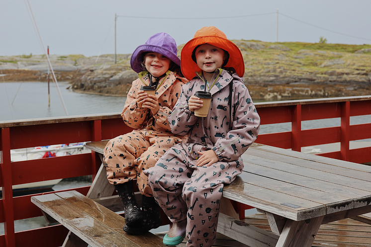 Children enjoying hot chocolate in the rain at The Coast Coffee, Lovund