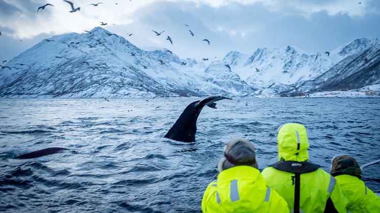 Beyond the northern lights, one of the area's winter highlights is whale watching, as large whales migrate into the Altafjord. Joining a whale safari brings you close to these impressive creatures, offering an unforgettable encounter with nature. Their dedication to ensuring these experiences are conducted with the utmost respect for these large mammals and their habitat, makes watching these animals in their environment even more enjoyable. The fjord's calm waters and winter light creates a backdrop to the whole experience that you will not soon forget.