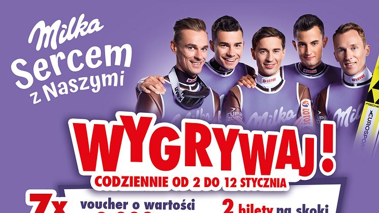 Milka, stworzona z najdelikatniejszego alpejskiego mleka, od zawsze wspierała narciarzy. Tak jak Polacy, dla których skoki narciarskie są ulubionym zimowym sportem. Marka w tym sezonie rozpoczęła strategiczną współpracę z Polskim Związkiem Narciarskim - jako oficjalny sponsor Polskiej Reprezentacji Skoczków Narciarskich Kadry A. Z tej okazji pod hasłem „Milka. Sercem z Naszymi” ruszyła ogólnopolska kampania, mająca na celu przybliżyć polskim kibicom naszych ukochanych sportowców oraz dzielić z nimi emocje towarzyszące zawodom.
