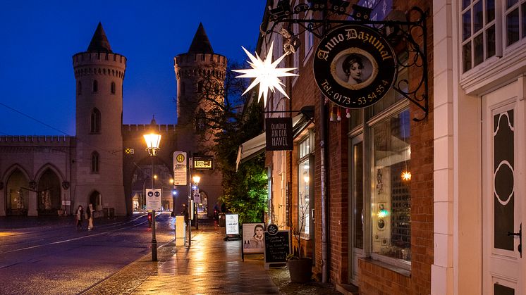 To get into the Christmas mood, Potsdam enthusiasts can take the magic of Advent home! On www.weihnachten-potsdam.de the PMSG Potsdam Marketing und Service GmbH posts all Christmas offers. Listen to Potsdam’s Christmas stories on the podcast, find presents by local manufacturers for your loved ones or order treats from Potsdam’s restaurants. “The Tourist Information centres stay open to the public and offer numerous gifts. Festive baubles, calendars or local sweets – you might find some nice and surprising Christmas presents. Also a decorative Potsdam Advent calendar filled with chocolate is on offer” Janine Loyal, head of the Tourist Information centres, informs.