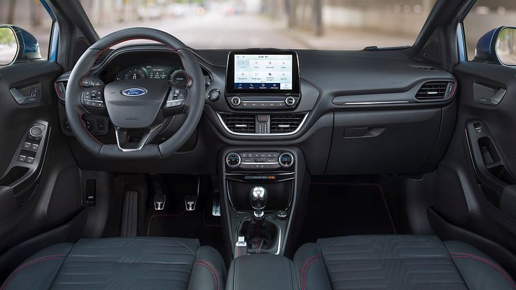 Elementele aripii inferioare semnate ST-Line direcționează aerul către prizele de aer. În interior, Puma ST-Line dispune de un volan cu baza teșită și cusături roșii – disponibile inclusiv pe scaunele mixte piele-textil, disponibile opțional. Pedalierul din aliaj, schimbătorul de viteze din aluminiu și căptușeala neagră tipică ST Line sporesc caracterul sportiv.
