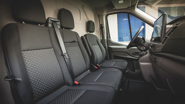 E-Transit este oferit în două versiuni – Base și Trend – și toate vehiculele oferă specificații semnificativ superioare față de modelul diesel echivalent. Seria Base include Control electronic al temperaturii aerului, pornire fără cheie, scaune încălzite, parbriz Quickclear și oglinzi electrice încălzite.