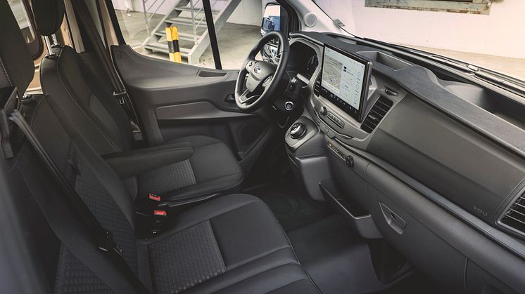 E-Transit introduce sistemul multimedia SYNC 44 în gama de vehicule comerciale Ford din Europa, oferind o putere de calcul de două ori mai mare decât SYNC 3. Controlul este realizat prin intermediul unui ecran tactil intuitiv de 12 inchi, rezistent la efectul luminii orbitoare.