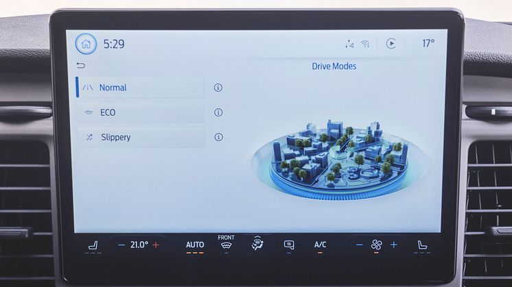 Echiparea Trend adaugă funcții de creștere a productivității, cum ar fi Ford Connected Navigation System5, care poate planifica cea mai eficientă rută și poate informa șoferii cu privire la rețeaua de încărcare, trafic, disponibilitatea parcărilor în timp real, precum și Intelligent Range pentru a afișa o autonomie mai precisă. Comanda vocală îmbunătățită disponibilă, precum și Amazon Alexa 6 încorporată, îi ajută pe șoferi să primească informațiile de care au nevoie fără a-și lua ochii de la drum.