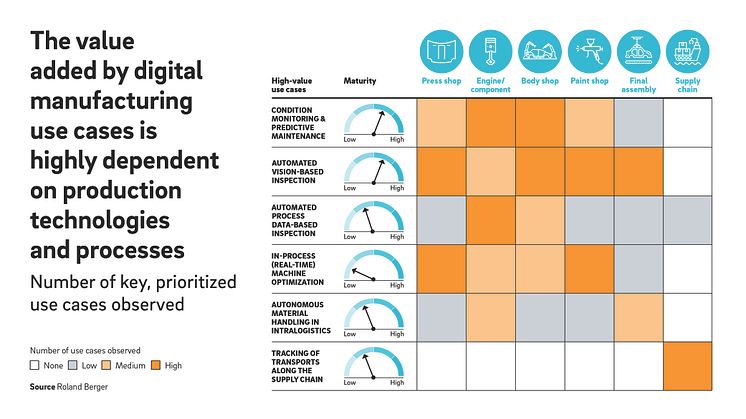 - In-process (real-time) machine optimization displays the lowest degree of technical maturity. There are currently some initial pilot use cases in press and paint shops.