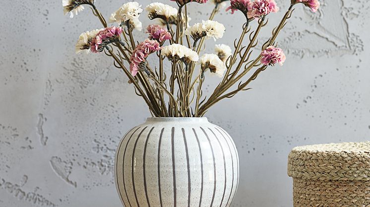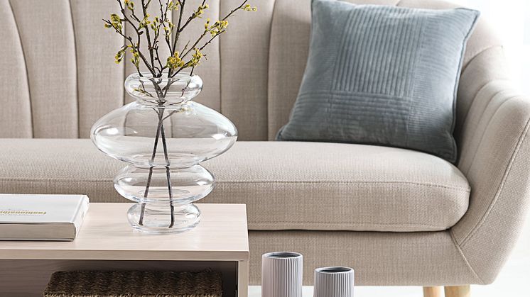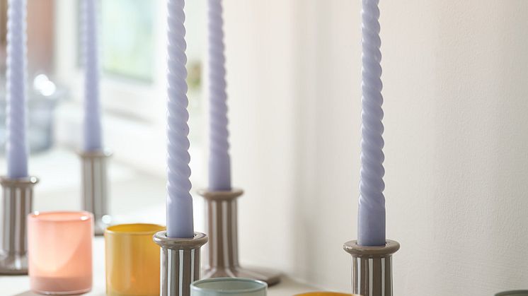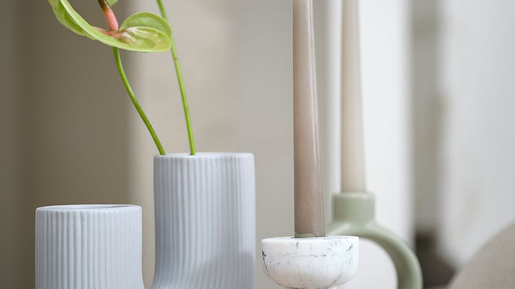 Dizajnerski proizvodi nastali su kao rezultat igre nepravilnih oblika i mekih linija, poput vaze TORMUND koja je estetična kao samostalni ukras, ali takođe i divna u kombinaciji sa cvećem. Pruge na svećnjaku MARK dodaju dodir razigranosti i stvaraju prelep kontrast kada se kombinuju sa plavom bojom sveće BALDUR.