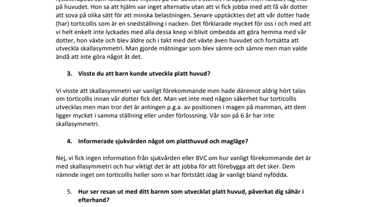I arbetet som 2 Sure gör får de ofta höra att föräldrar får som svar från sjukvården att platt huvud växer bort, samt att när barnet får hår syns det inte och att det endast är kosmetiskt.