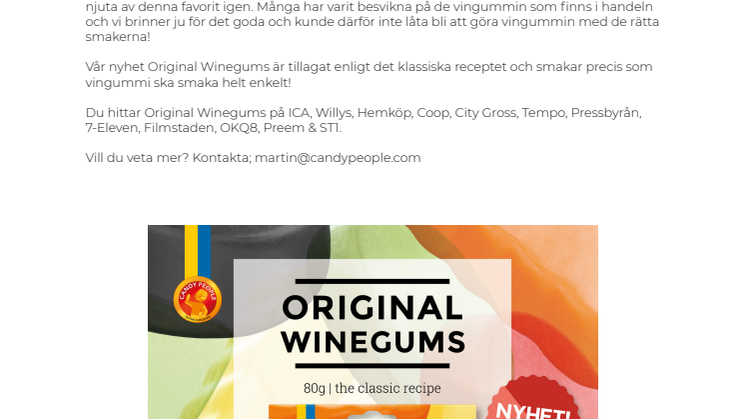 Vår nyhet Original Winegums är tillagat enligt det klassiska receptet och smakar precis som vingummi ska smaka helt enkelt!