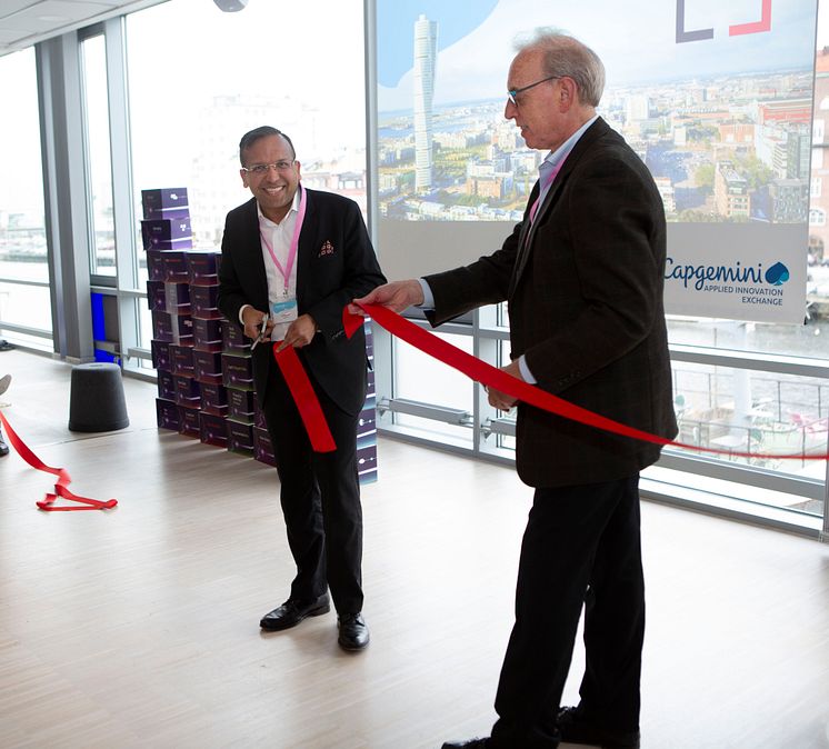 Anil Agarwal och Lanny Cohen klipper band på Capgminis nya AIE