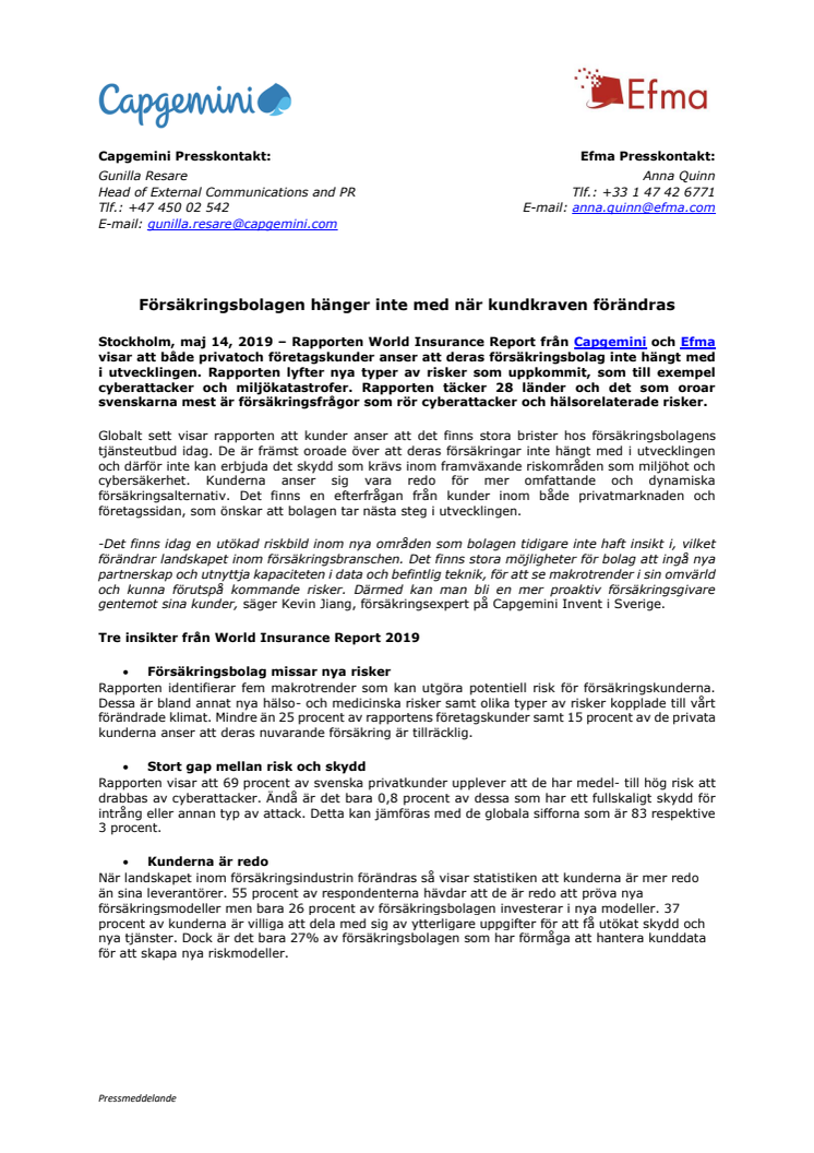 • Försäkringsbolagen hänger inte med när kundkraven förändras