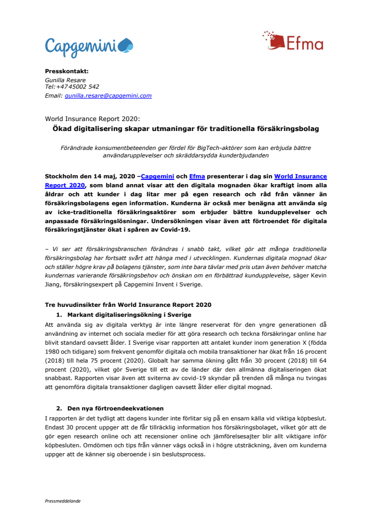 • Ökad digitalisering skapar utmaningar för traditionella försäkringsbolag