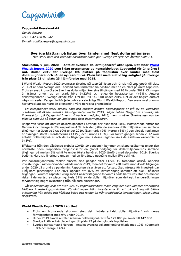 • World Wealth Report 2020