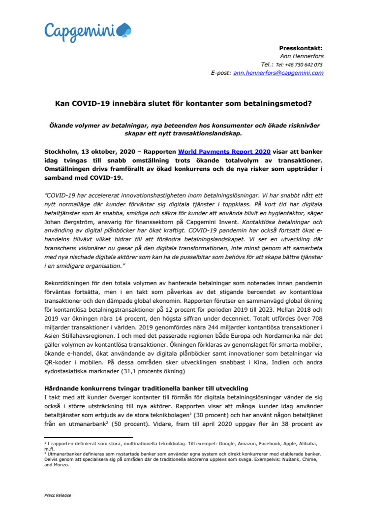 • Kan COVID-19 innebära slutet för kontanter som betalningsmetod?