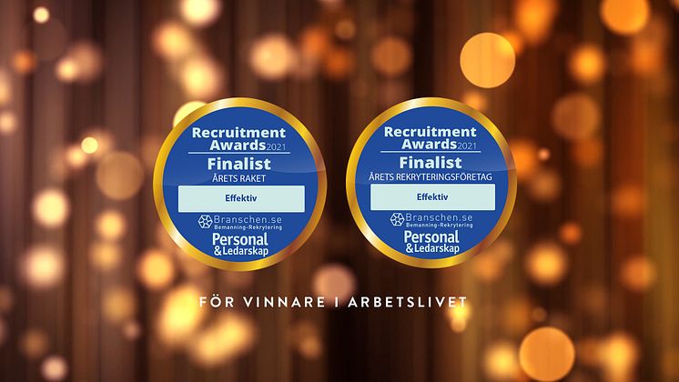 Bland Sveriges 2590 rekryterings- och bemanningsbolag står det nu klart att Effektiv är en av finalisterna i kategorin Årets Raket respektive en av finalisterna i kategorin Årets Rekryteringsföretag.