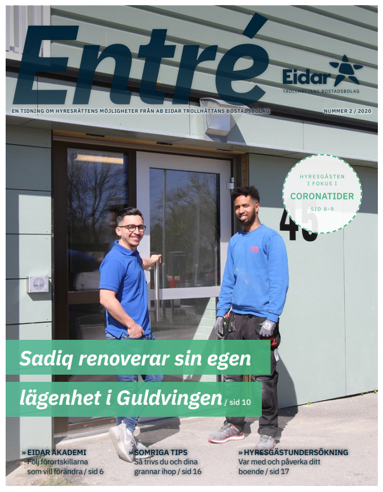 Vad sägs om tredje spåret Eidar Akademi för social hållbarhet, med inriktning på ungdomar. Eller om hur en av våra hyresgäster fick arbete som innebär att han renoverar sin egen lägenhet. Dessutom får ni följa med Eidars VD Urban Blom på prao i verksamheten.
