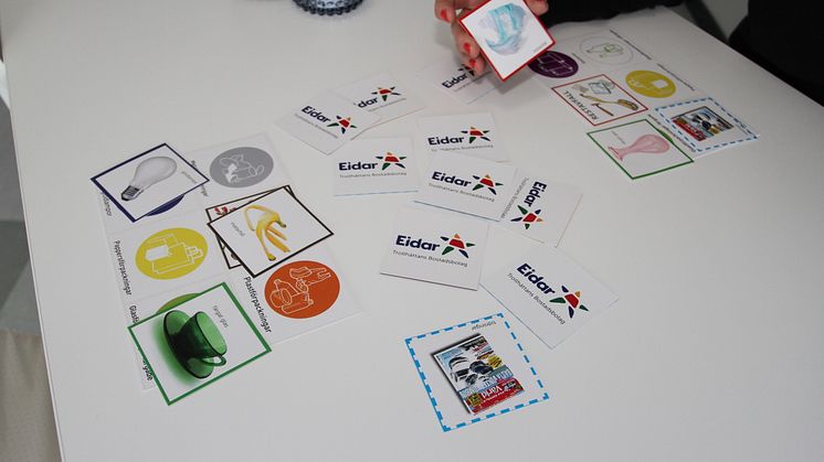 På lottobrickorna används samma symboler och färger p som på Eidars återvinningskärl. Även spelkorten är färgkodade för att även de yngsta ska kunna vara med och spela. Tanken är att föräldrarna spelar tillsammans med sina barn och på så vis får hela familjen bättre koll på sopsorteringen.