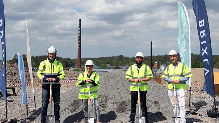 Eidars vd Urban Blom höll i en av spadarna som tog det första spadtaget. På plats med varsin spade fanns även Eidars styrelseordförande Tony Georgiou, kommunalråd Monica Hansson och Staffan Call som är arbetschef på Brixly.