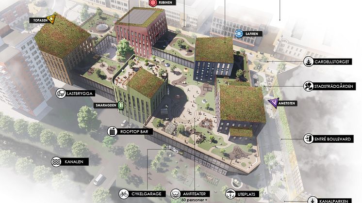 Visionsskiss överblicksbild. Bild: Sesam arkitekter/Boulevardfastigheter