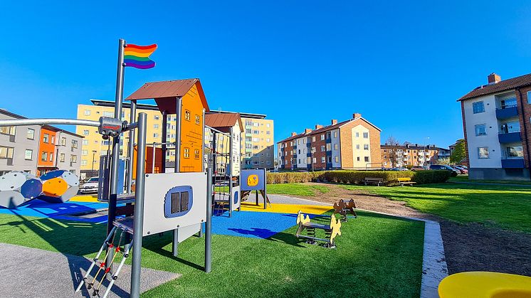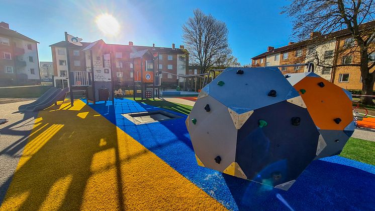 Den nya lekplatsen ligger på gården till Utställningsvägen 14, men är öppen för alla leksugna. I anslutning finns också nyinstallerade sittytor och grill, samt en boulebana.