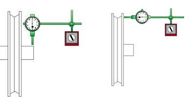 Radial runout of the sheave should be checked after verifying that there is no radial runout of the shaft. If the sheave has runout, it is probably due to an eccentrically bored sheave or bushing. Replace or re-machine the sheave or busing prior to aligning sheaves.
