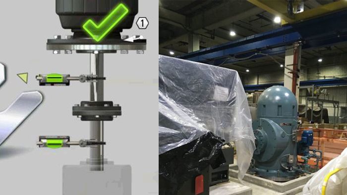 Finally, I will share some related thoughts from this job. The millwright team had done an excellent job roughing things in with traditional mechanical methods. However, I think they will agree their new-found skill may replace these methods in the future due to increased speed and ease (there are 6 more of these pumps on the overall job spanning the next 2 years). Because everything was roughed in with precision, there were no surprises and the subsequent alignments (pump to floor bearing 2, floor bearing 2 to floor bearing 1, and floor bearing 1 to gear reducer) were all completed quickly and within tolerance. If you are wondering could the alignment be measured from the coning process – YES! With the RM detector from the same kit, the coning could have been completed right down to 0, and then actually measured to confirm when you get to true center. In this case, with the distances involved being so long, the visual measurement and positioning was quite sufficient. Additional opportunities were discovered for this customer to utilize the T21 transmitter and level application during initial setting of soleplates and pump bases. All in all, a very productive visit!