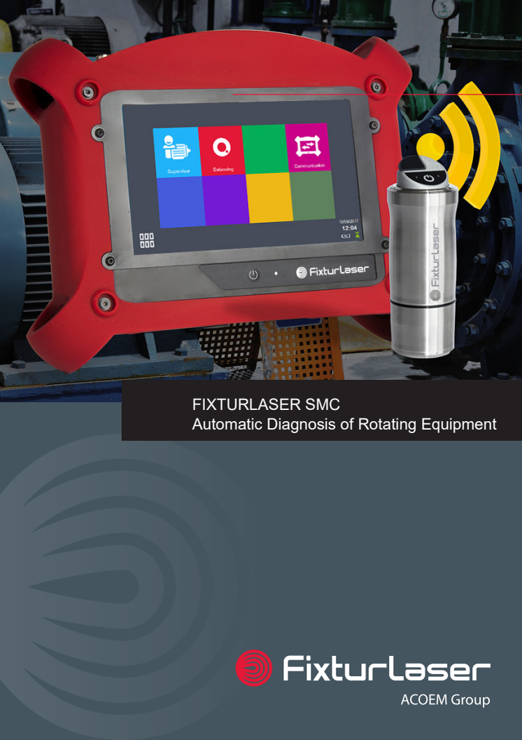 The Fixturlaser SMC is an automatic diagnostic tool that checks the health of rotating machines in minutes. The SMC detects faults on machines more accurately and reliably than any previous automatic diagnostic tool thanks to the patent pending Accurex™ software in the SMC.