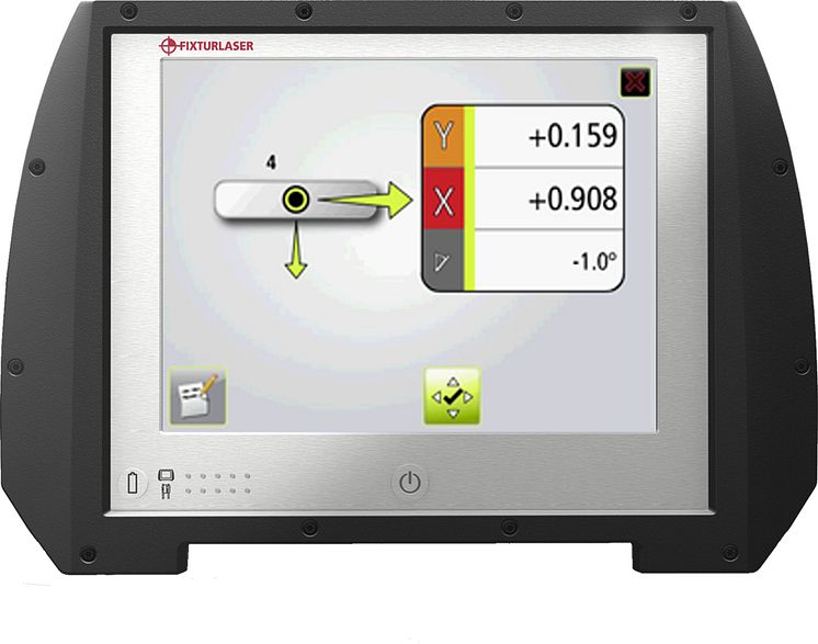 The graphic user interface is intuitive and 3D animated, with icons and color coded symbols to guide you throughout the measurement and adjustment process.
