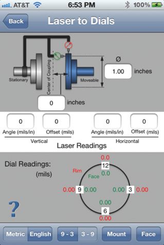 The Laser-Dials App converts rotating shaft alignment data between dial indicator readings and laser shaft alignment system angles and offsets. The Laser-Dials App allows technicians to easily see their alignment results in the measurement terms they're most comfortable using. The Laser-Dials App can be downloaded free from the Apple App Store and from Google Play.