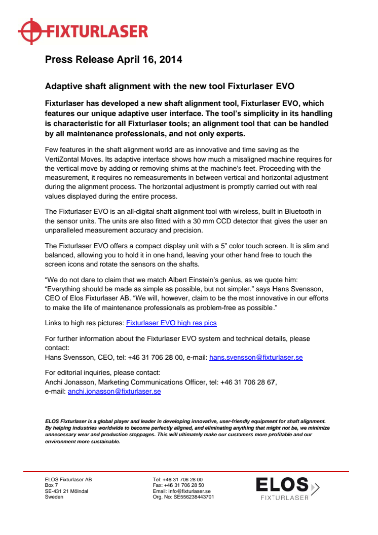“We do not dare to claim that we match Albert Einstein’s genius, as we quote him: “Everything should be made as simple as possible, but not simpler.” says Hans Svensson, CEO of Elos Fixturlaser AB. “We will, however, claim to be the most innovative in our efforts to make the life of maintenance professionals as problem-free as possible.”