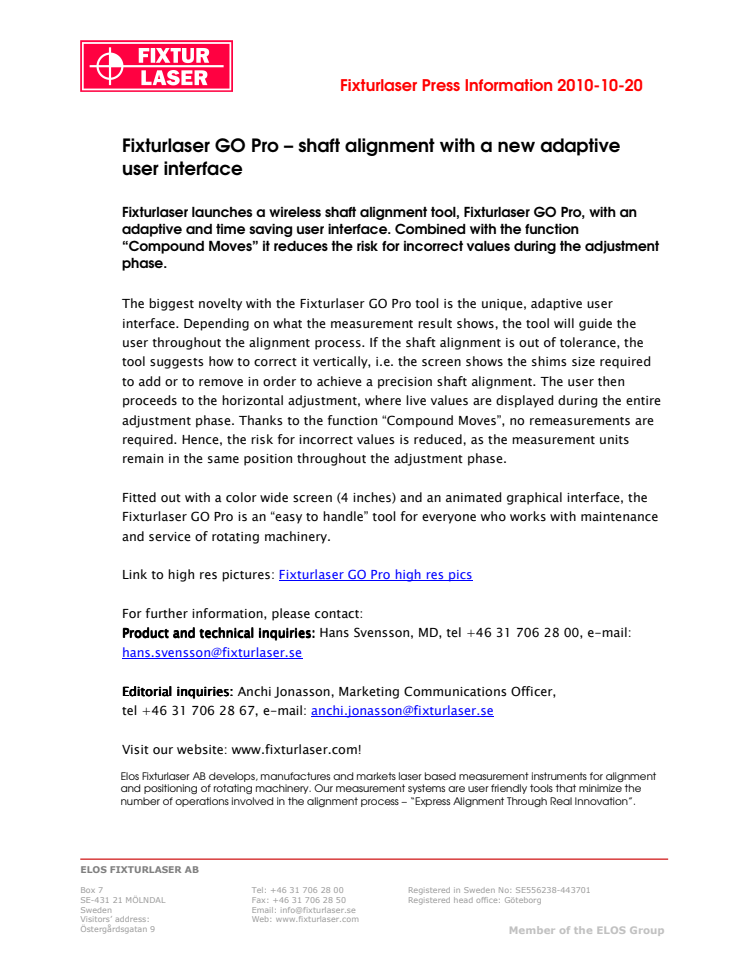 Fixturlaser GO Pro – shaft alignment with a new adaptive user interface