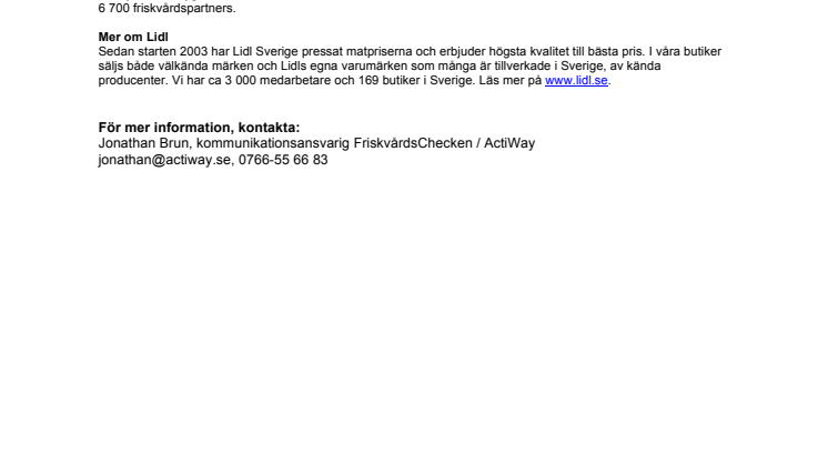 - Friskvård är en viktig fråga för våra medarbetare så vi är fantastiskt glada att vi nu kan erbjuda friskvårdsbidrag till alla medarbetare i Sverige. Vi valde ActiWay som friskvårdspartner eftersom de har en enkel lösning som ger våra medarbetare stor valfrihet när det gäller friskvård, säger Carolina Edlund, Head of Recruitment & Employer Branding på Lidl Sverige.