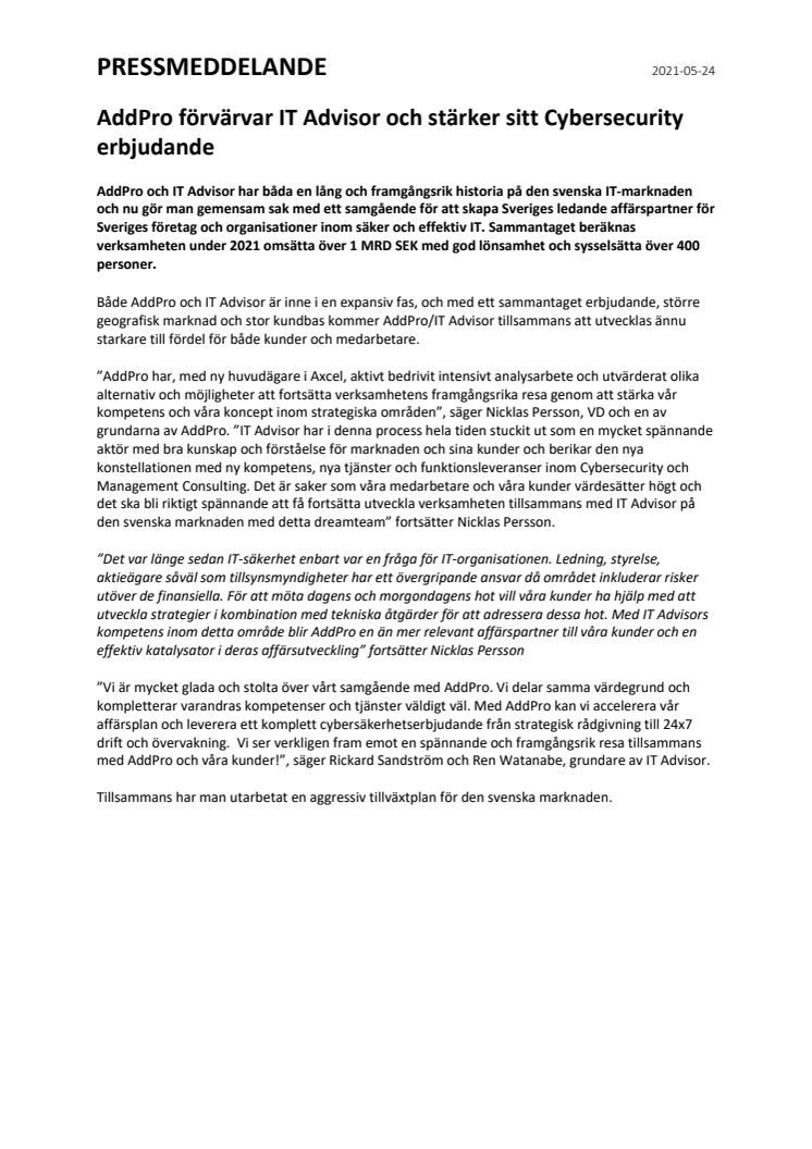 IT Advisor och Addpro - Pressmeddelande 2021-05-24.pdf