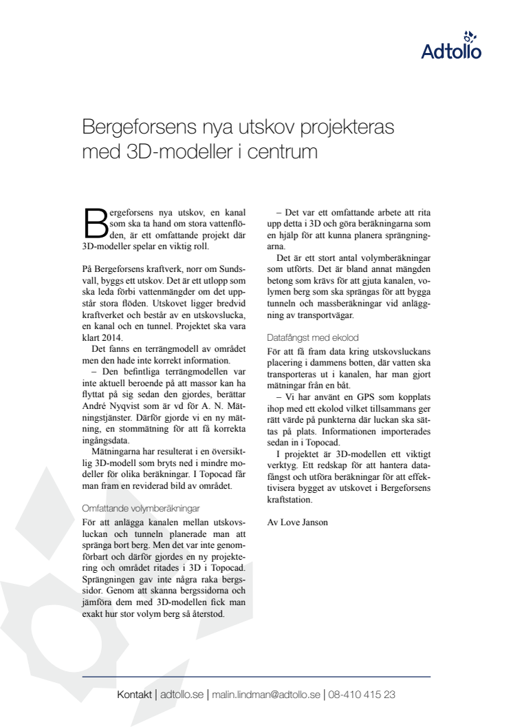 Bergeforsens nya utskov, en kanal som ska ta hand om stora vattenflöden, är ett omfattande projekt där 3D-modeller spelar en viktig roll.