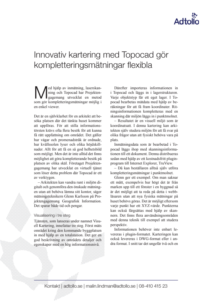 Med hjälp av inmätning, laserskanning och Topocad har Projektengagemang utvecklat en metod som gör kompletteringsmätningar möjlig i en enkel viewer.