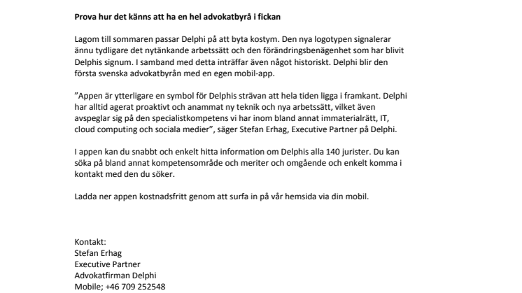 • 2011-08-15, Pressmeddelande Advokatfirman Delphi: Delphi-advokater topprankade