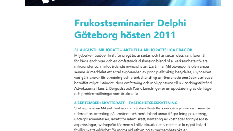 • Delphi bjuder in till frukostseminarium i Göteborg