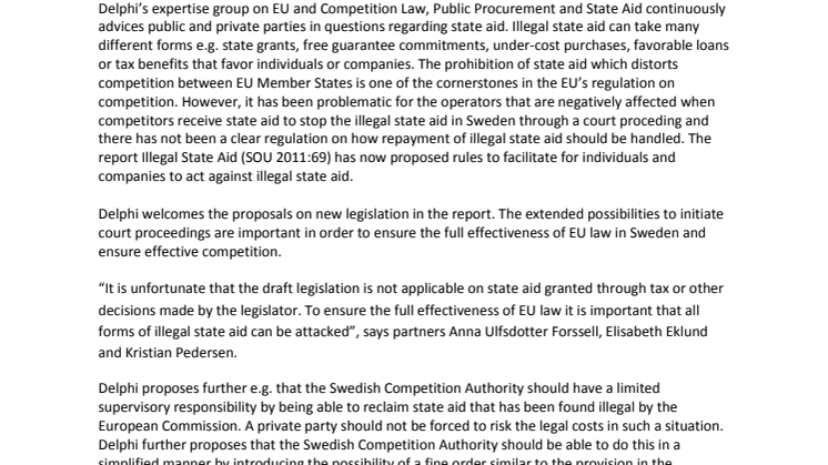 • Delphi considers introduction of Swedish legislation on state aid as positive