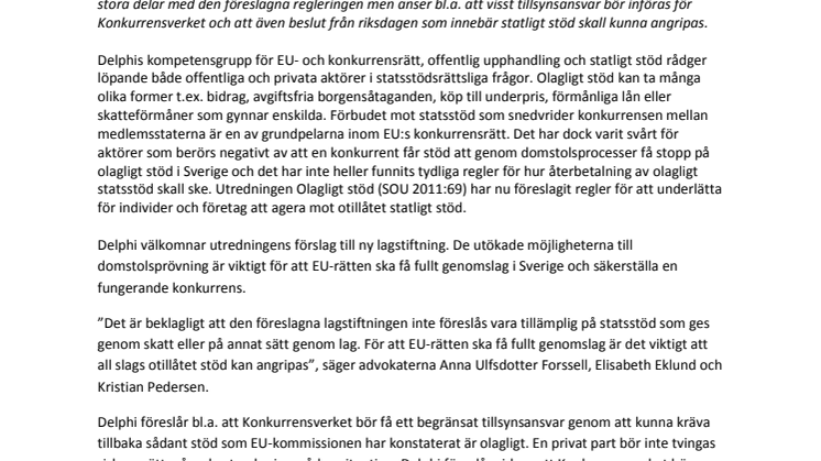 • Positivt med införande av svensk lagstiftning för statsstöd