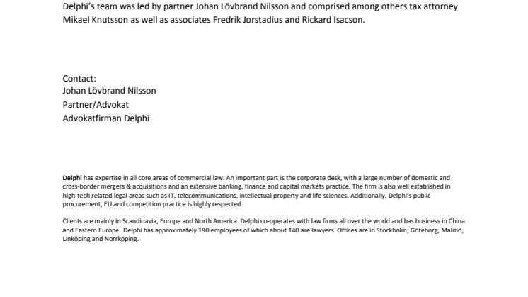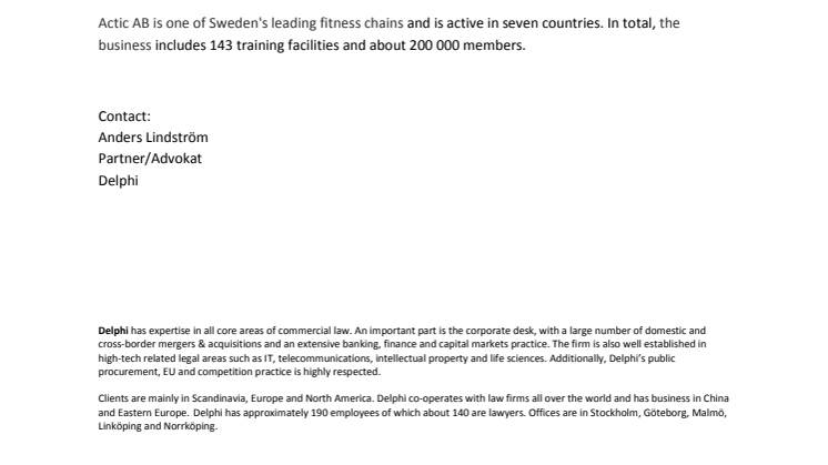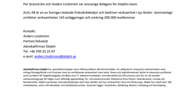 • Delphi advises Actic AB’s management on its sale of Actic AB to IK Investment