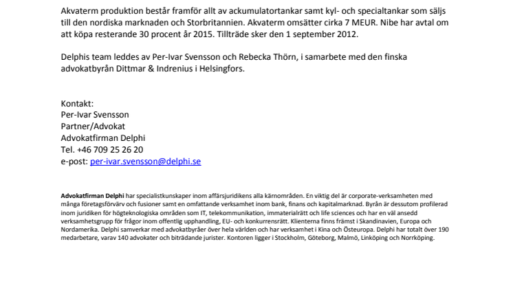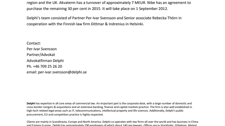 • Delphi rådgivare när NIBE förvärvar Akvaterm i Finland