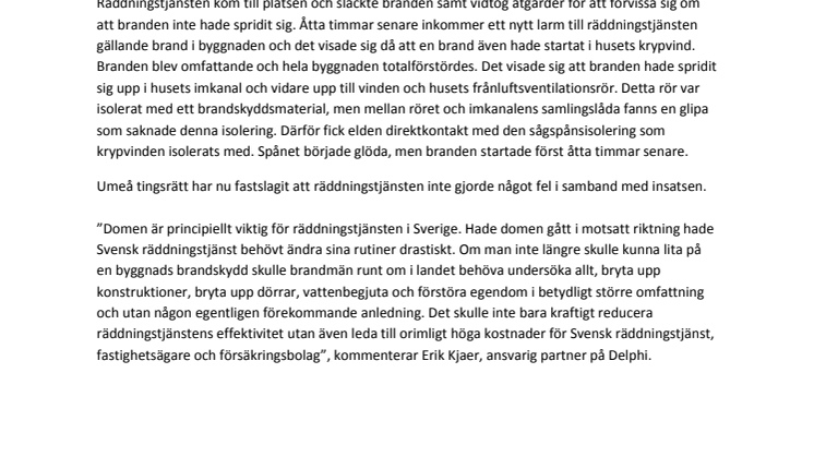 • Delphi biträdde Umeå kommun i det mål som rör räddningstjänstens ansvar