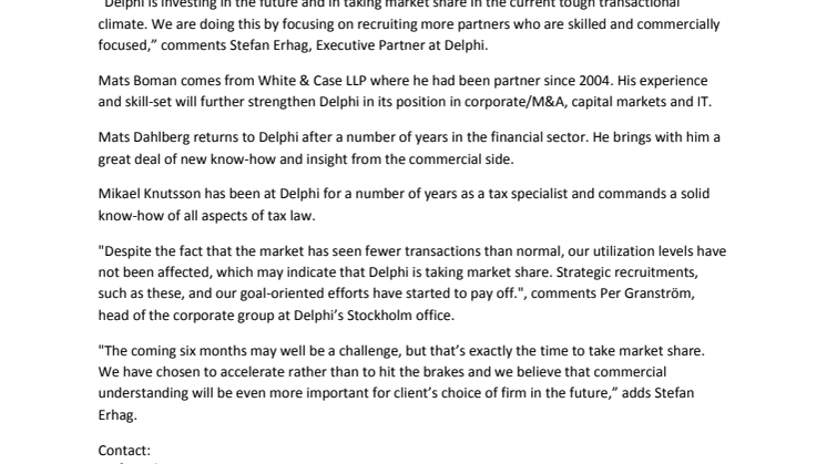 • Delphi rådgivare åt Peab vid försäljningen av fastigheter i Östersund