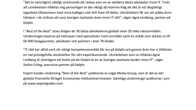 • Agne Lindberg named to be one of the world's top IT lawyers