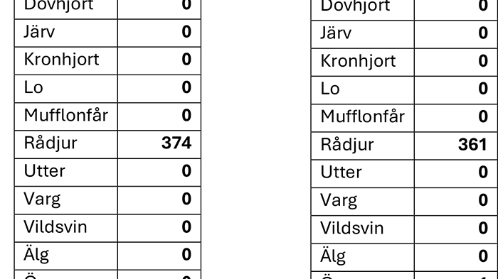 Statistiken visar hur viltolyckorna i Gotlands län fördelar sig på det anmälningspliktiga viltet.