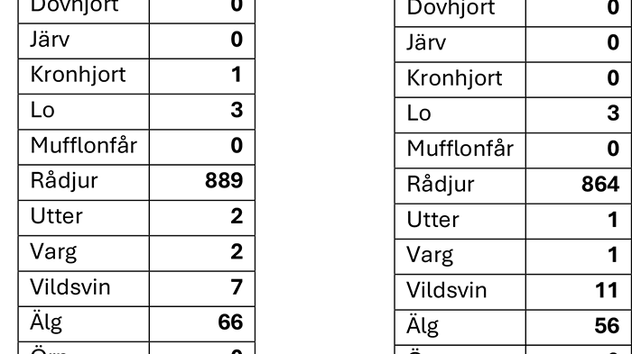 Statistiken visar hur viltolyckorna i Gävleborgs län fördelar sig på det anmälningspliktiga viltet.